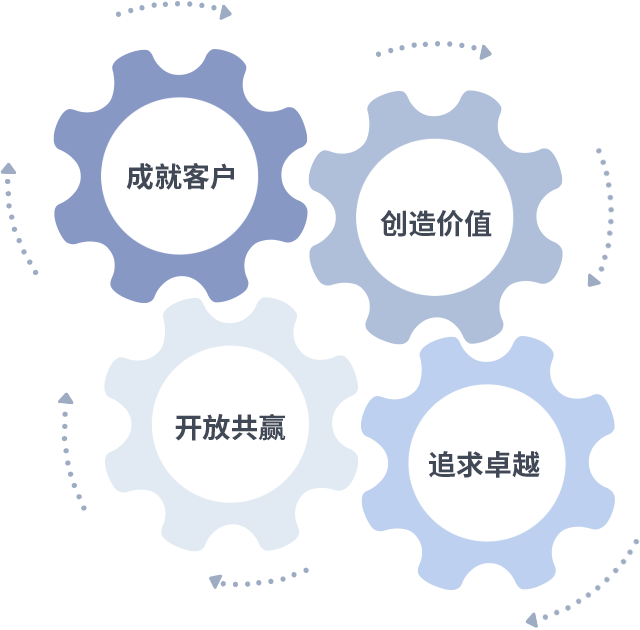 成就客户是一切决策的出发点,创造价值是衡量所有工作的标准,追求卓越是SA视讯做事做人的态度,开放共赢是SA视讯的格局也是最终的结果。价值观的齿轮环环相扣,推动着组织里的每个人不断向前。